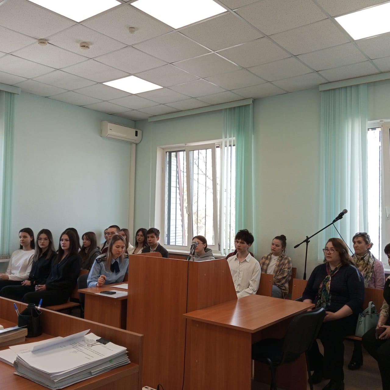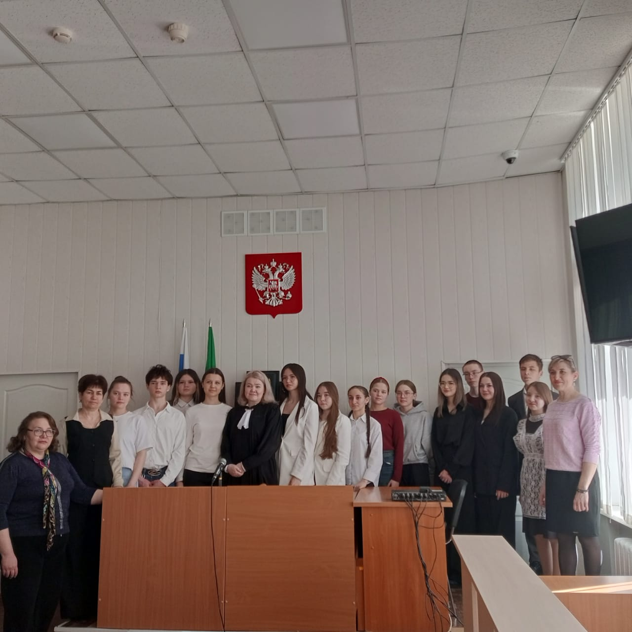 В рамках проекта «Правосудие: от А до Я», заключенного между Управлением Судебного департамента в Республике Татарстан и Министерством образования РТ, учащиеся старших классов средней общеобразовательной школы села Тумутук провели Урок права в Доме правосудия. Они посетили судебный процесс судьи Альберта Олеговича Сибатрова, где рассматривалось гражданское дело о незаконном обогащении. Учащиеся воочию увидели механизм осуществления правосудия и вынесения законного и справедливого решения суда. После окончания процесса судьи Альберт Сибатров и Ирина Газизова провели содержательную беседу о необходимости строгого соблюдения Законов и правопорядка, дали ребятам полезные советы и компетентные ответы на все интересующие их вопросы. Далее в рамках ознаменования 80-летия Победы администратор суда Альбина Темирбулатова ознакомила юных гостей с музеем суда, рассказала о первом председателе Софине Р.Е. – участнике Великой Отечественной войны, кавалере боевых орденов и медалей, других судьях и работниках Азнакаевского и Тумутукского судов - участниках Великой Отечественной войны. Посещение суда для старшеклассников завершилось фотографированием на фоне судебных атрибутов и музейного стенда. «Участие на судебном процессе, беседы судей и работников суда были полезными, интересными и поучительными»,- сказали ребята и педагоги на прощание. ![]() ![]() ![]() ![]()